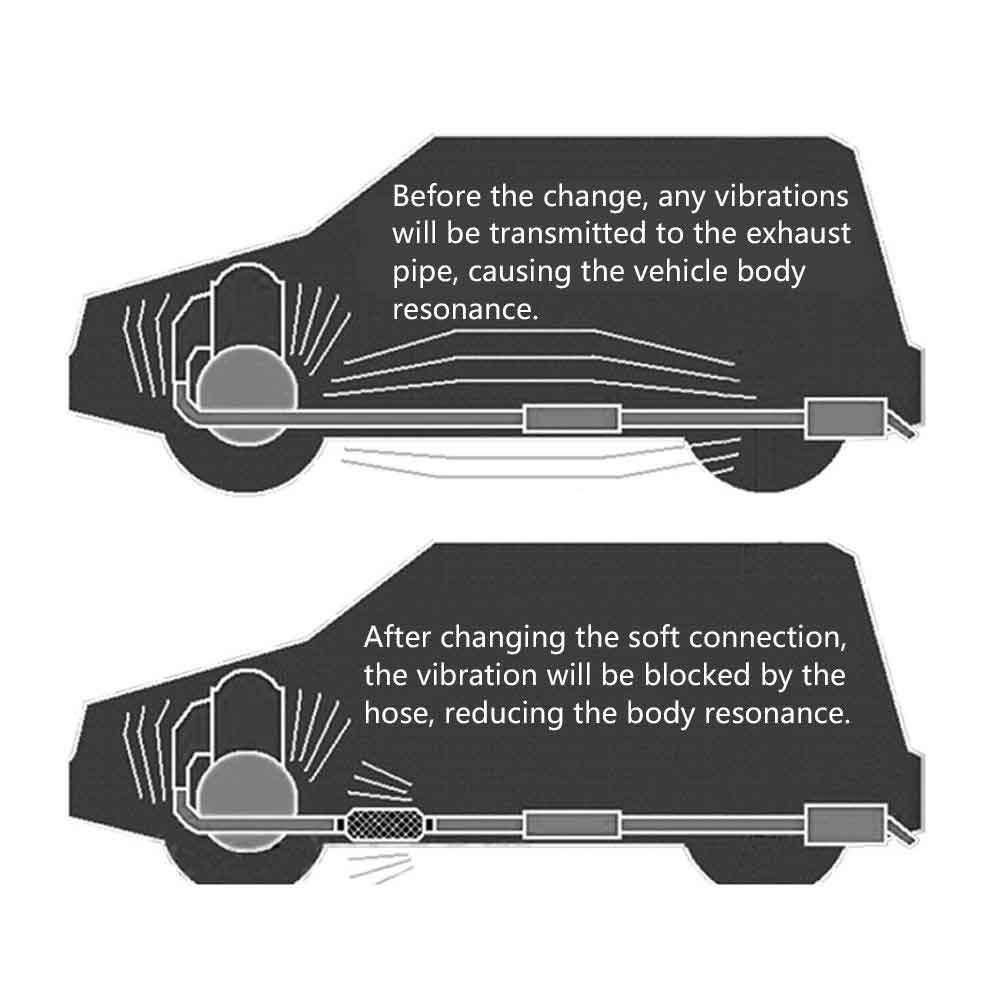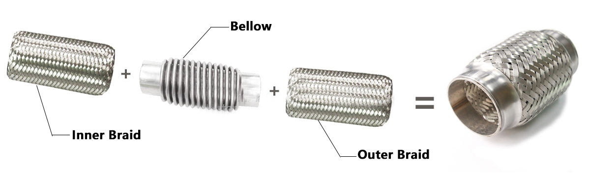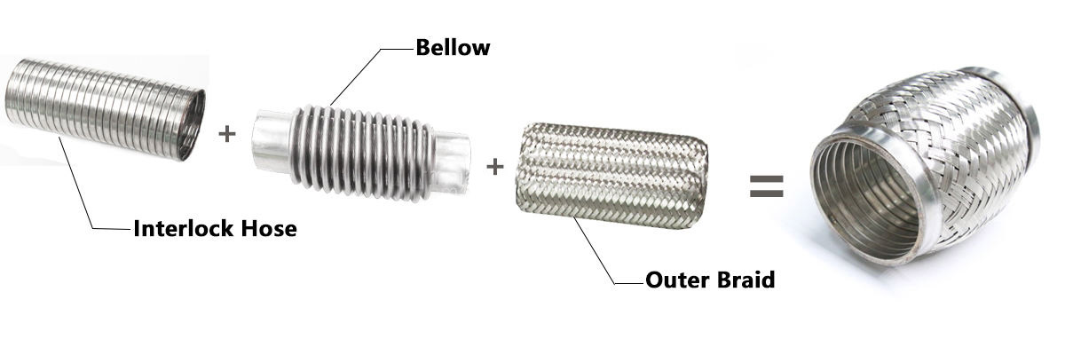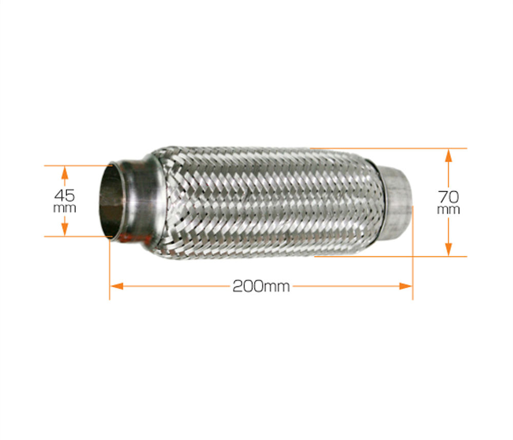 1) Flexible exhuast pipe, a component of automobile exhaust system. 2) Installed between the engine and the muffler. 3) Used to reduce engine noise and vibration. 4) Absorb the thermal expansion of the exhaust pipe. 5) Compensate the misalignment of the exhaust converter. 6) Reduce air pollution. 7) Made of SS 304 stainless steel (main components). Once fitted should give you a lifetime’s trouble free use. 8) Interlocking inside the lining.
