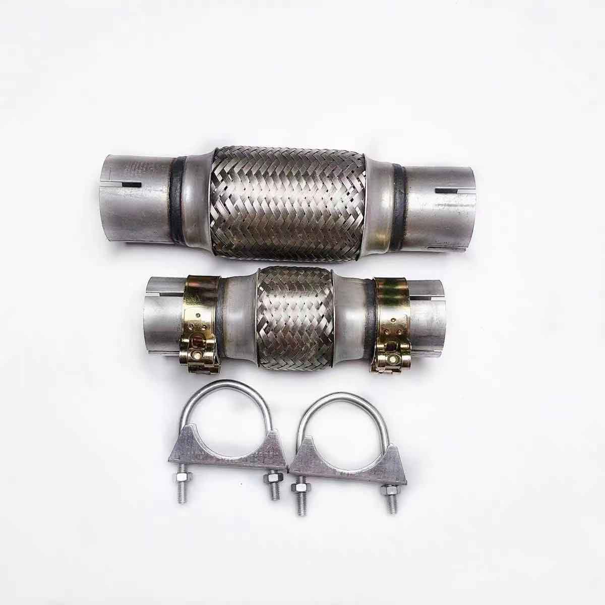The flexible exhuast tube/ pipe is made of stainless steel ss201 ss304 ss316 with interlocking hose, braids or corrugated stainless steel hose inside. These flexible pipes can be used in conjunction with auto standard exhaust or repaired systems, or they can be used with high-performance exhaust systems. it can use with clamps or exhaust clamps.